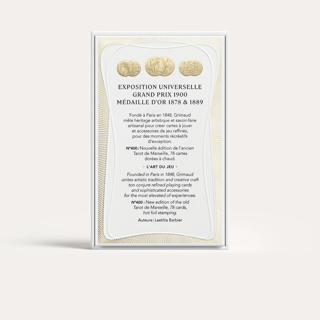 - Accompagné d’un livret explicatif rédigé par la cartomancienne Laetitia Barbier et imprimé sur papier type velin d’arche avec une coûture de fil d’or.