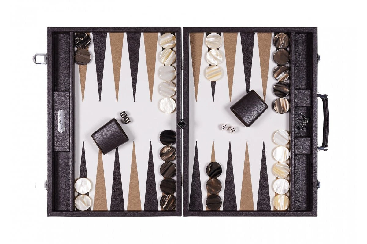 Backgammon gainé de cuir de buffle chocolat.