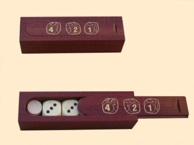Coffret de dés pour 421 en bois.