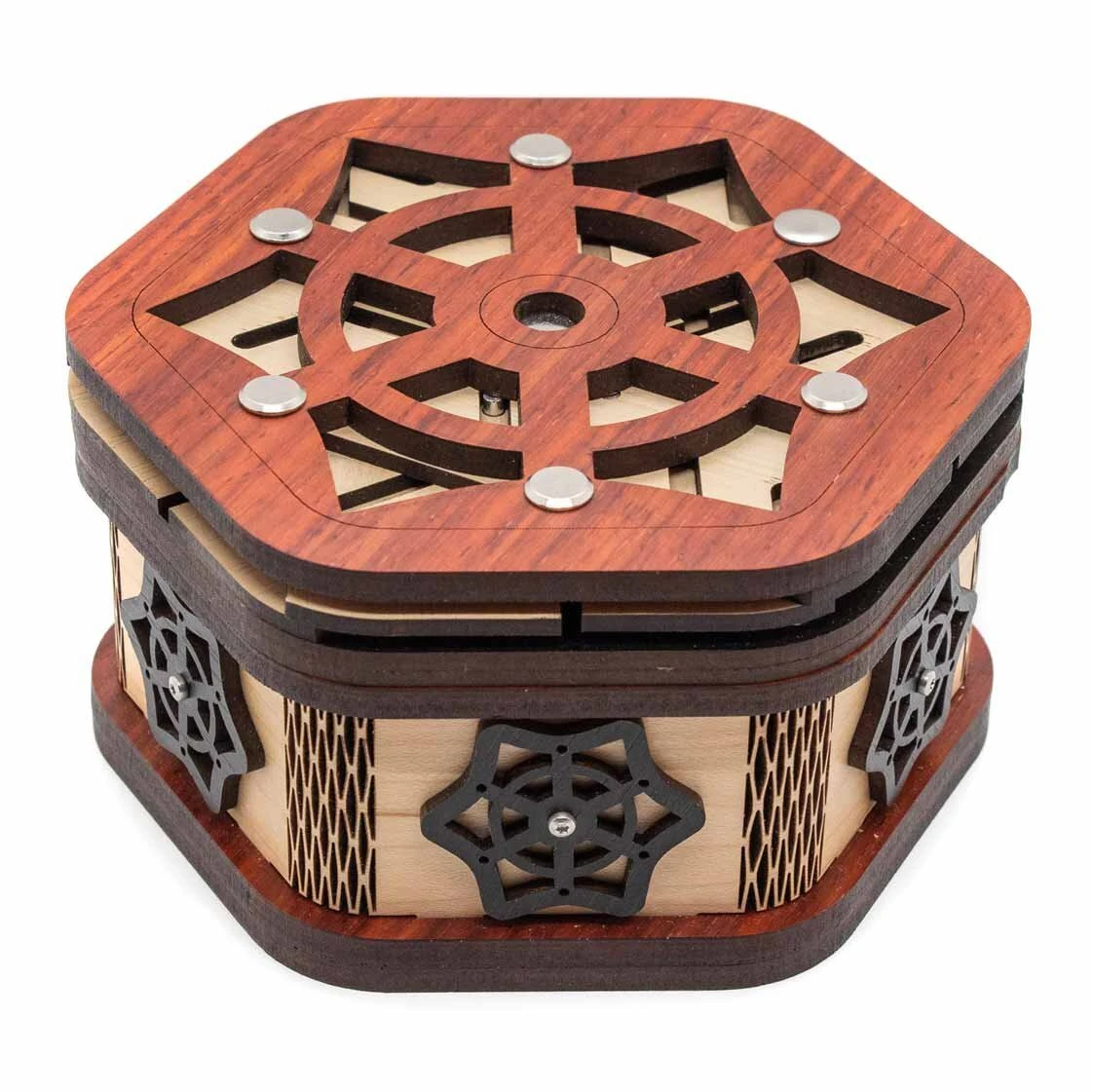 Une des plus belles boîtes de puzzle séquentielle en bois avec une difficulté maximale pour faire coulisser tous les plateaux cachés !