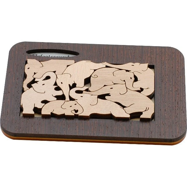 Mini casse-tête en bois, consistant à remettre tous les éléphants dans le cadre.