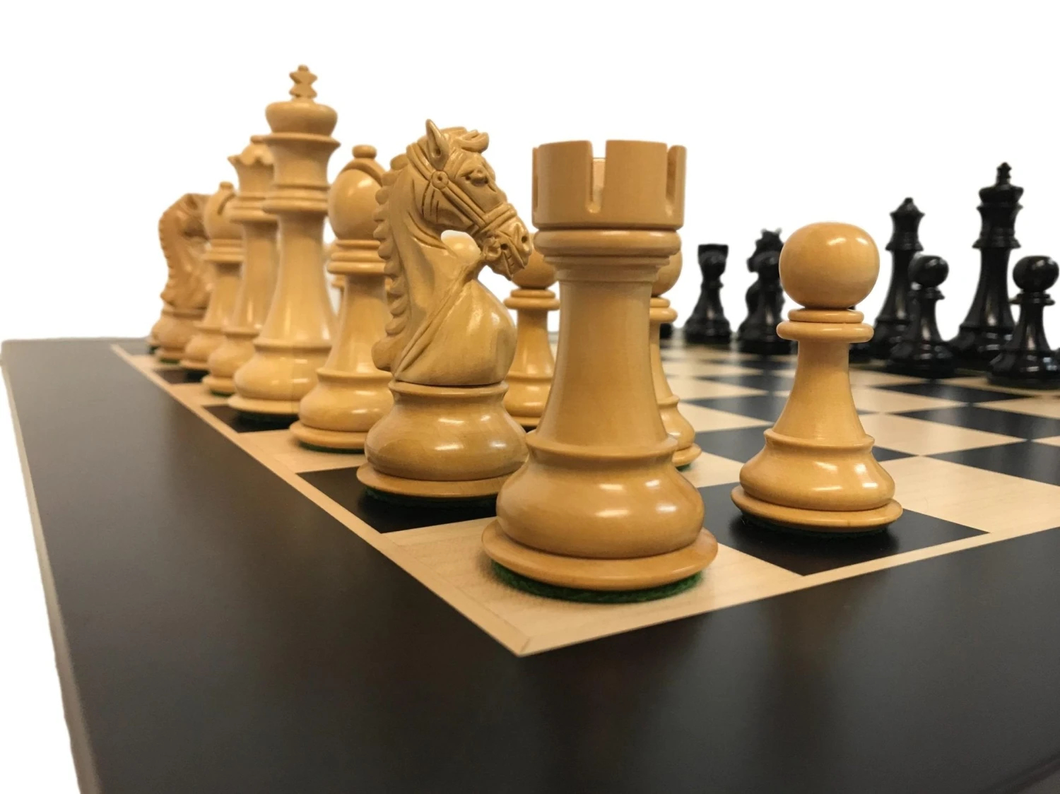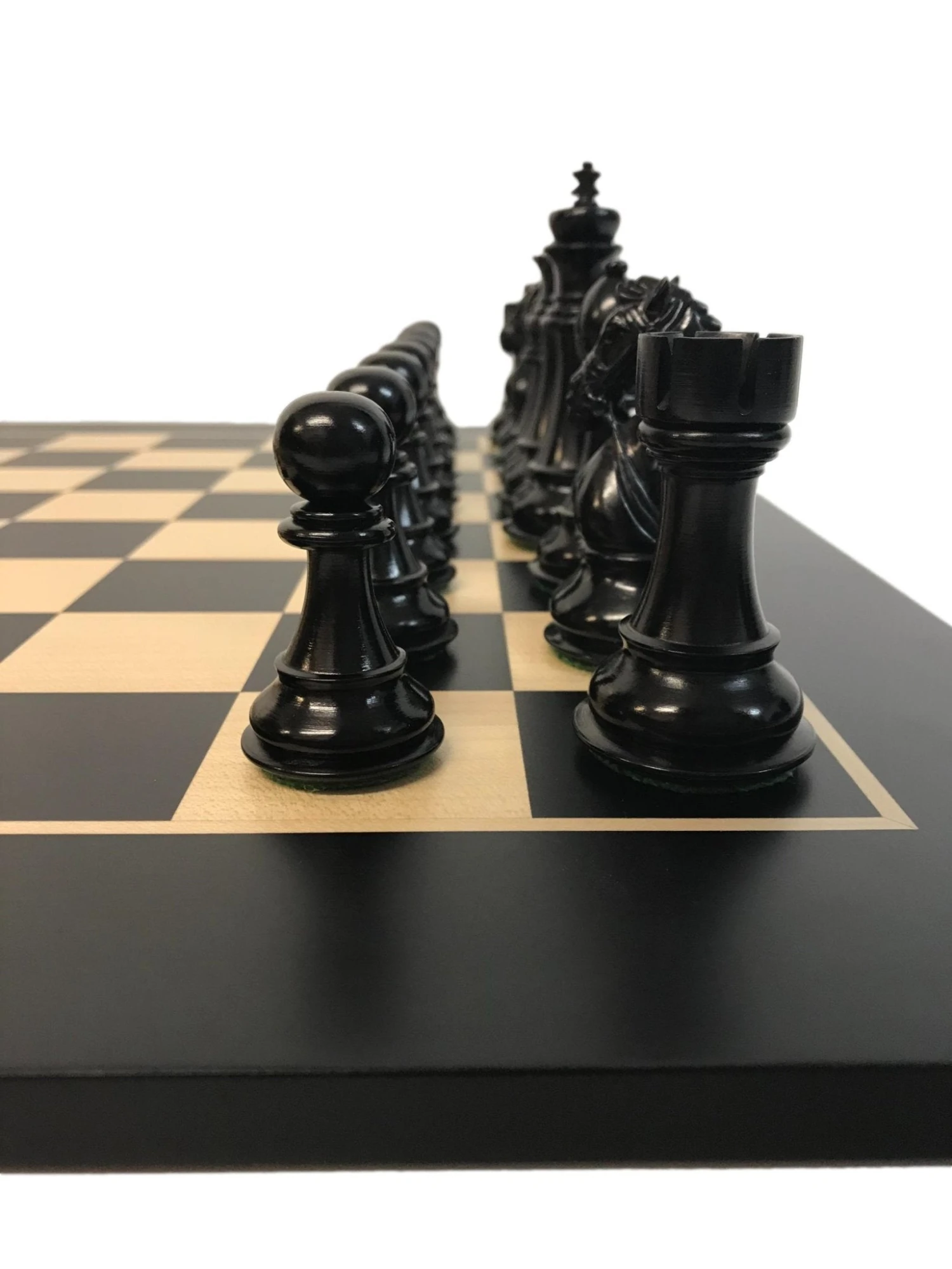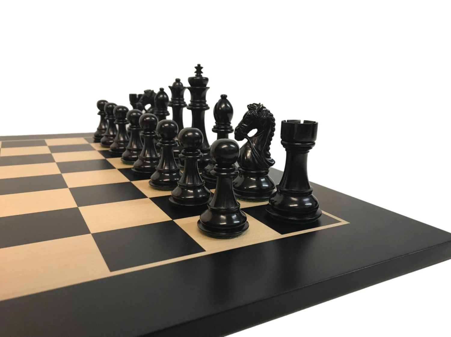 en bois de rose, sur un échiquier noir en Poirier teinté pour les pièces noires.