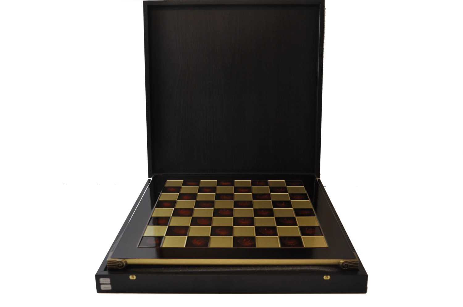 Jeu d’échecs de luxe Staunton en métal perlé – Échiquier rouge et or 44 x 44 cm