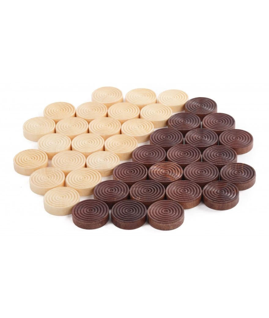 Pions de en bois naturel et bois teinté noir 32 mm.