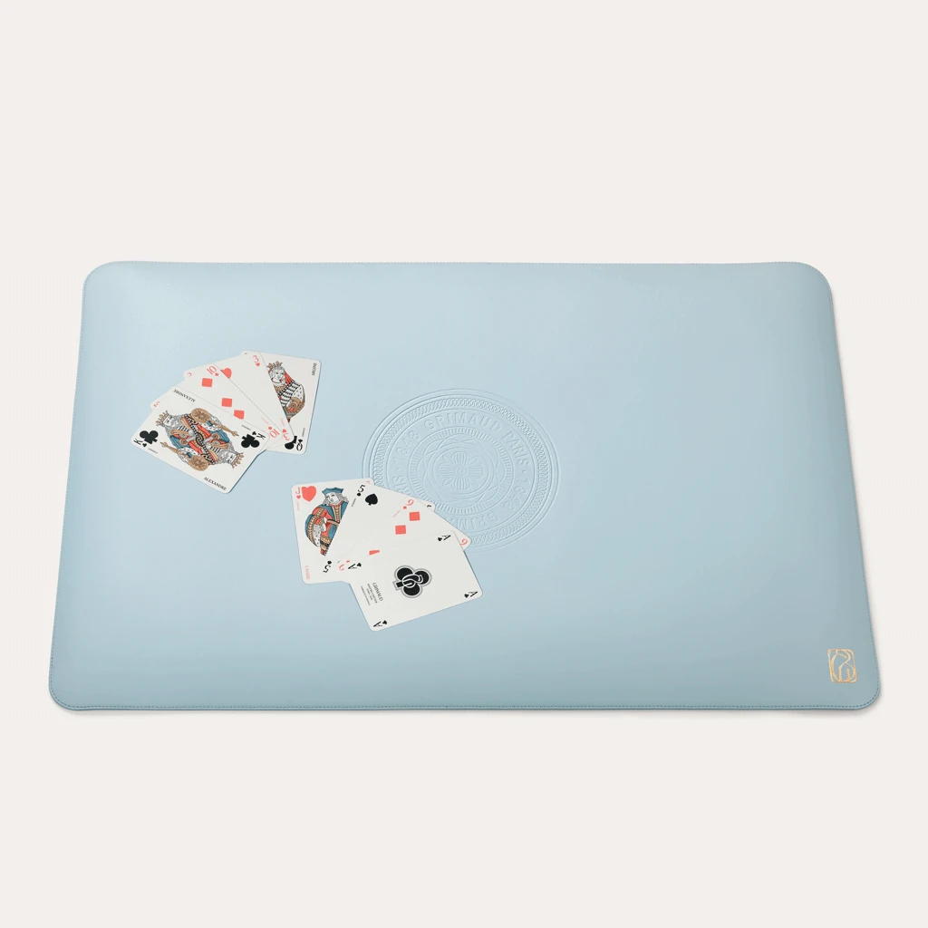 Conçu pour offrir la surface idéale à vos parties de cartes, où que vous soyez, ce tapis de jeu élégant couleur Bleu Dauphin est confectionné en cuir de pomme souple et résistant.