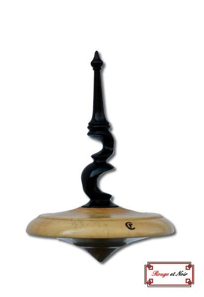L’ Excentrique, toupie fabriquée en bois naturel, buis et palissandre foncé.